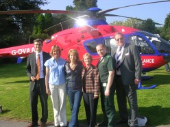 Celebrating the launch of the new Devon Air Ambulance, from left to right: Markus Steinke, MD of Eurocopter UK; Helen Mackie, Devon Air Ambulance paramedic; Jennie Bond, Ann Ralli, founder of Devon Air Ambulance Trust; James Searle, South Western Ambulanc